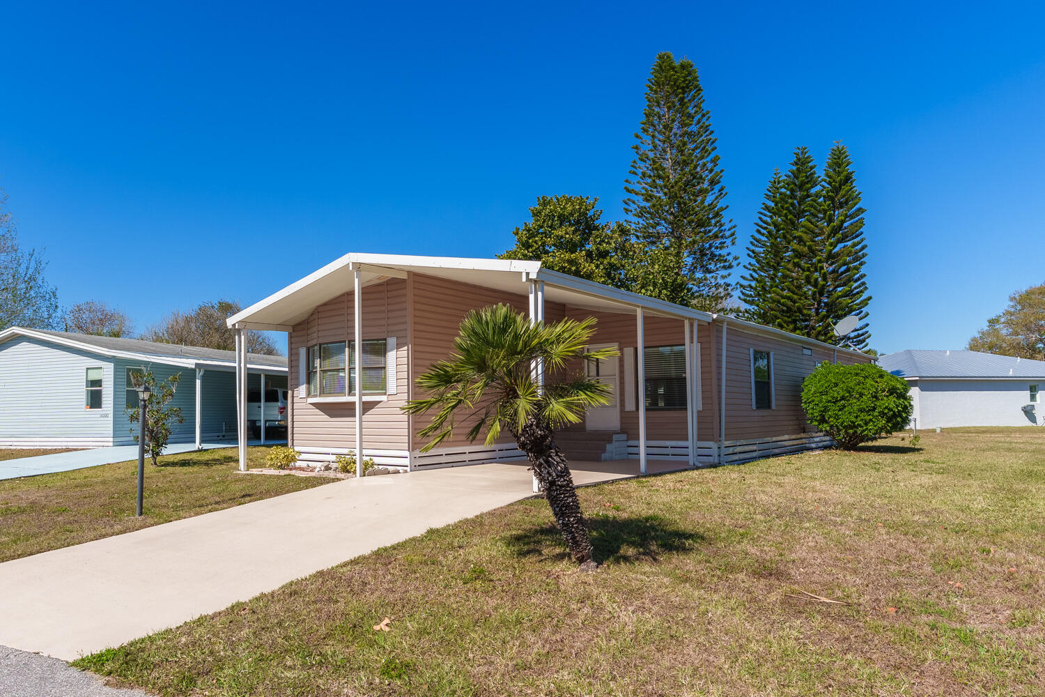 Description6 months free lot rent for the next buyer. Charming Spanish Lakes Fairways home with a split floor plan 2 bedrooms and Flex room! This park owned property offers low lot rent of just $649/month. Inside, enjoy modern laminate flooring throughout, a screened in small patio, and a clean, move in ready space. Residents enjoy community amenities including free golf, clubhouse with pool and fitness center, tennis, pickleball, shuffleboard, bocce, and regular social events. Perfect opportunity for affordable, comfortable 55+ living! Close to clubhouse and rec department.