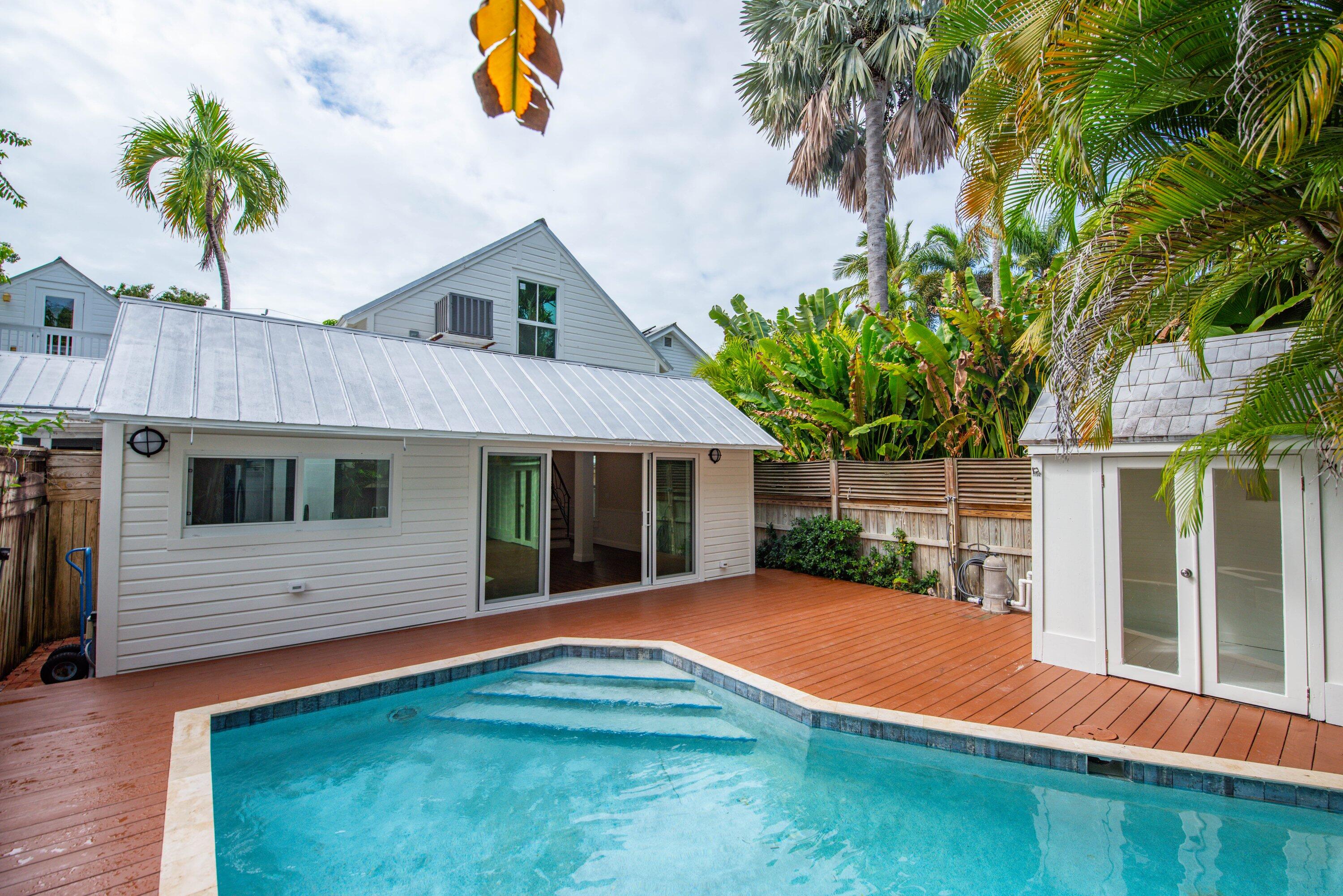 DescriptionCharming remodeled 1929 Old Town Key West home on iconic Margaret Street, offering privacy, new impact windows & doors, flooring and timeless island feel. Set back from the street, this three bedroom, two bath residence feels like a peaceful retreat while remaining close to Duval Street and the historic seaport. The outdoor living space features a beautiful pool and spa area surrounded by a spacious deck, perfect for relaxing and entertaining. A small separate pool house with a half bath adds convenience and flexibility (not included in square footage). A rare opportunity to enjoy classic Key West charm with exceptional outdoor living in a prime location.